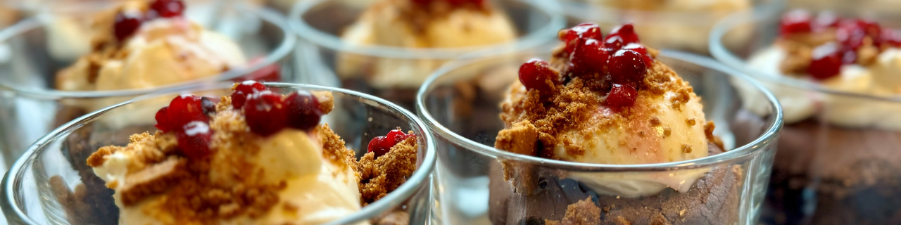 Vi vill bidra till att skapa minnesvärda ögonblick genom mat som är tillagad utifrån omsorg, ansvar och glädje. Våra kockar har utifrån dessa tre ledord skapat fasta menyer som kan passa till alla möjliga olika tillfällen. Vi lägger stor omsorg vid att personer med allergi, intolerans eller särskild kost serveras just den mat som personen i fråga är i behov av.