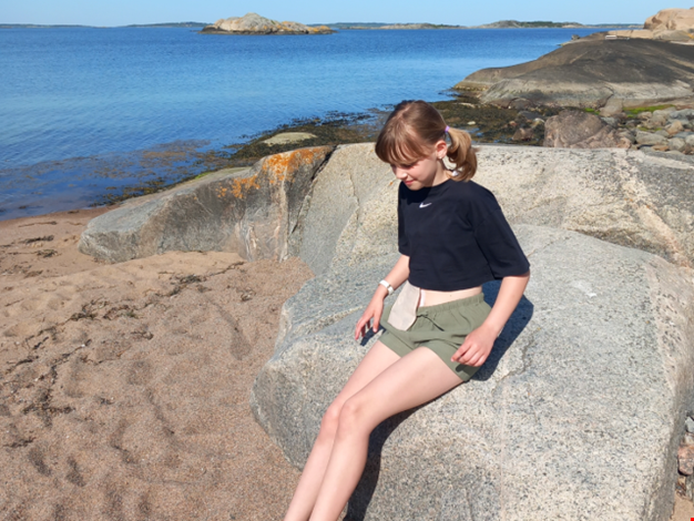 Bella berättar att hon tycker det är bra att hennes stomi syns. Ibland får hon frågor från nyfikna barn.
