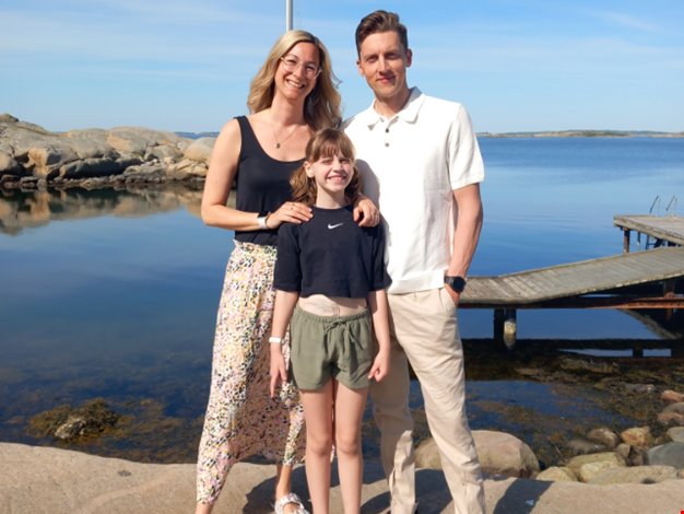 Bella, 8 år, och hennes föräldrar Emma och Anders var i maj 2024 på familjevistelse för PIPO på Ågrenska. PIPO leder till tarmsvikt som innebär att tarmen inte kan ta upp tillräckligt med näring, salt och vätska. För att kompensera för det behövs närings- och vätskebehandling. Många barn med PIPO behöver total parenteral nutrition (TPN), vilket innebär att vätska och näring ges direkt i blodet genom en central infart (CVK). Många behöver också olika typer av stomier för avföring och urin.