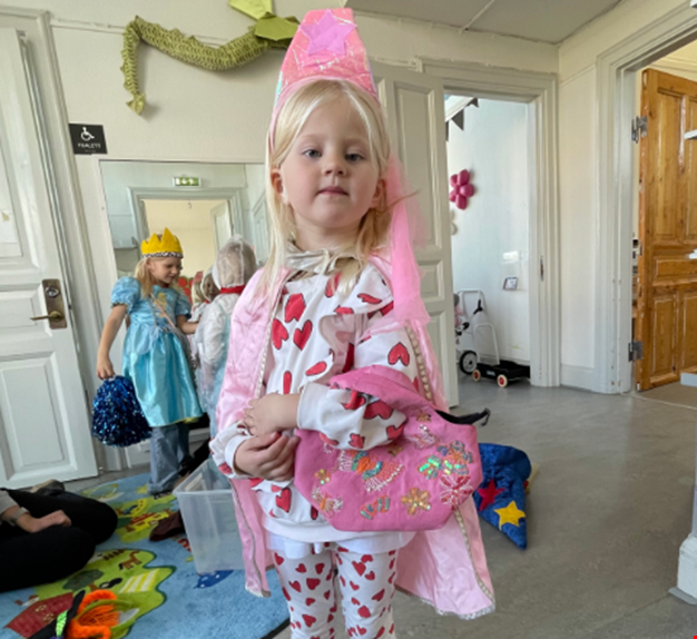 Liv klär ut sig tillsammans med kompisar i lekrummet på Ågrenska.